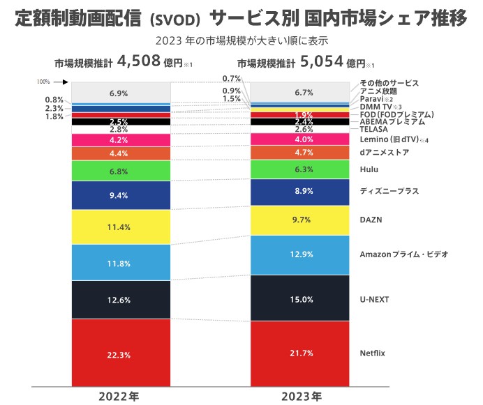 です。U-NEXTはNetflixに次いで2位!